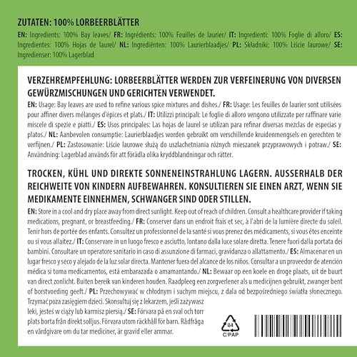- Enthält ausschließlich Lorbeerblätter als Zutat